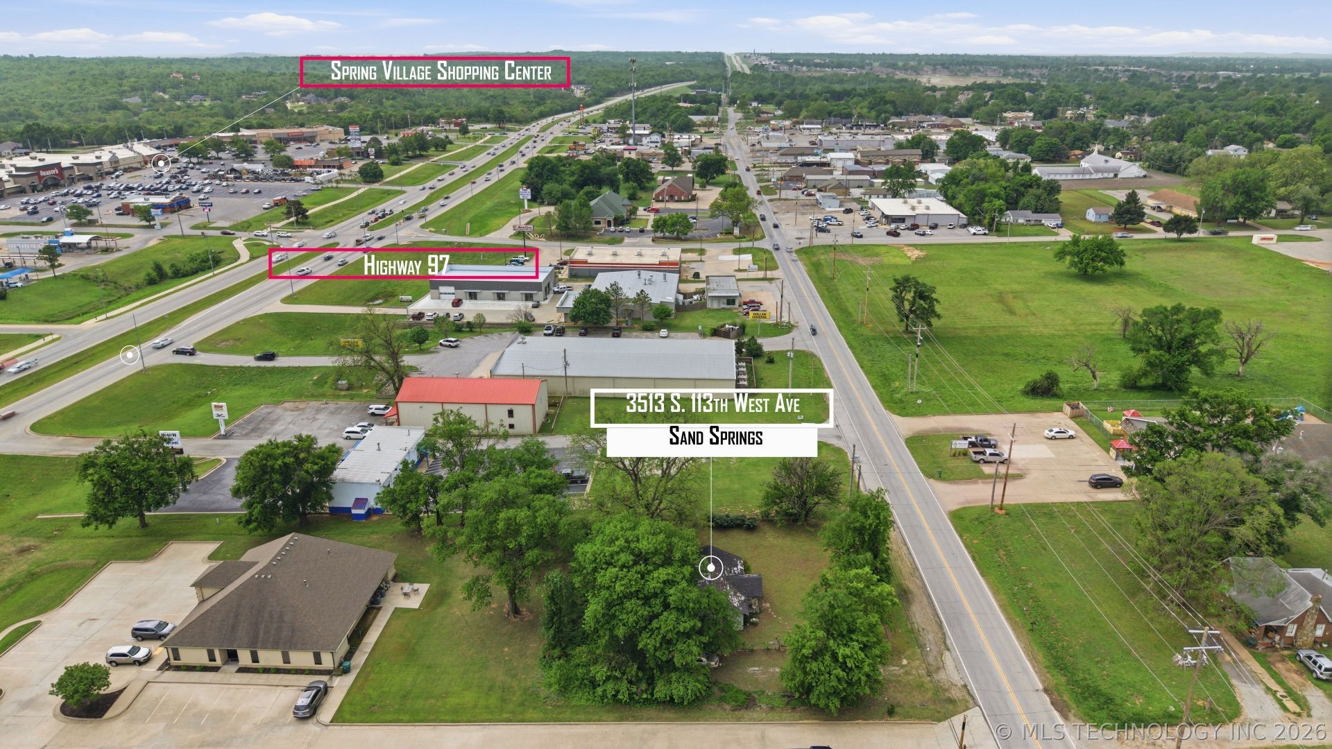Commercial-zoned property located just off Hwy 97 in Sand Springs with excellent visibility and access. This property offers a valuable land opportunity in a high-traffic corridor near established retail, restaurants, and service businesses, including the Spring Village Shopping Center. The lot features dual street frontage, allowing for flexible ingress and egress. Existing structure is given no value and is being sold as-is, where-is. Ideal for redevelopment or new construction for a variety of commercial uses (buyer to verify zoning and permitted uses). Utilities available (buyer to verify). Convenient access to Tulsa and surrounding areas.